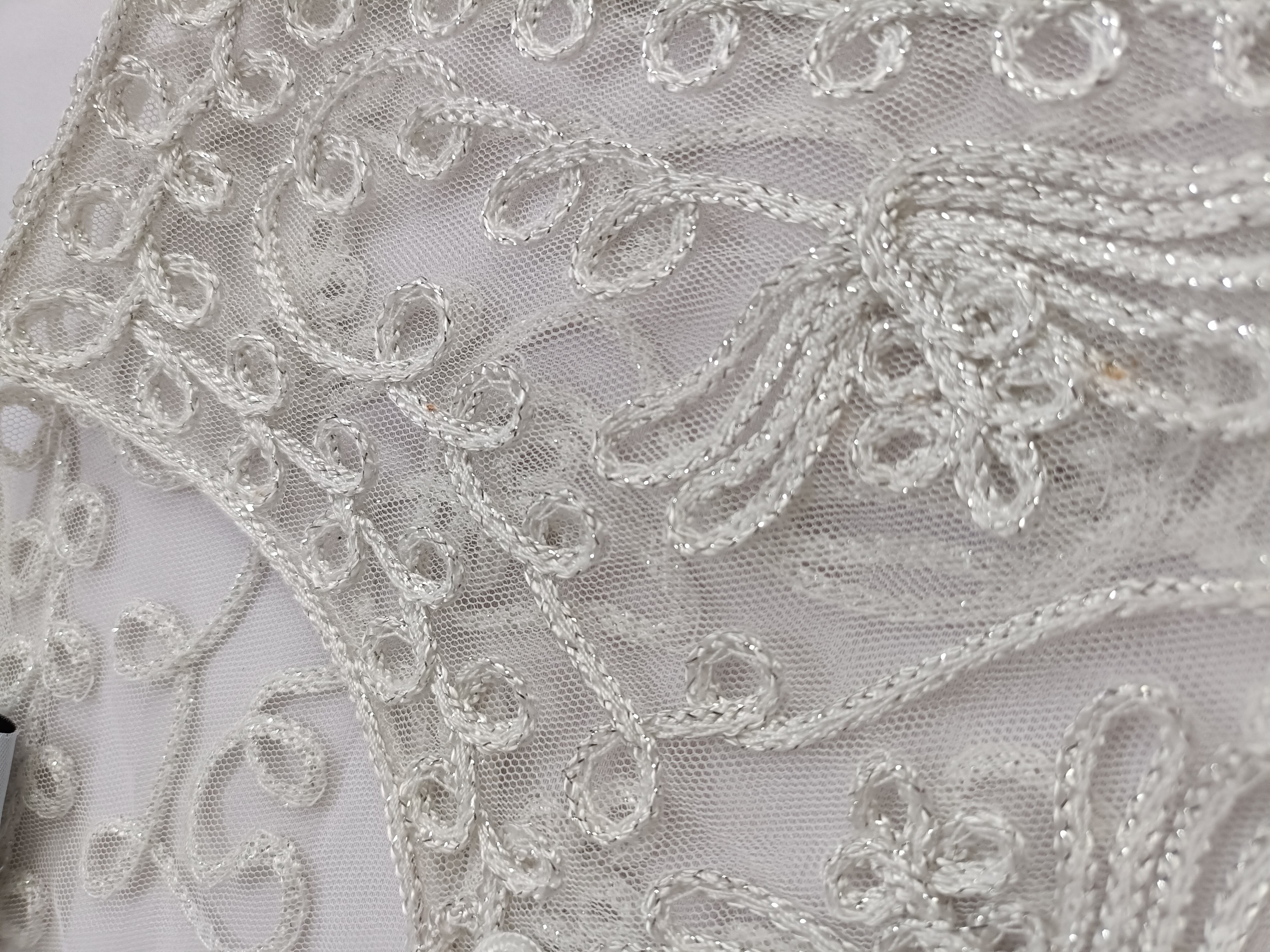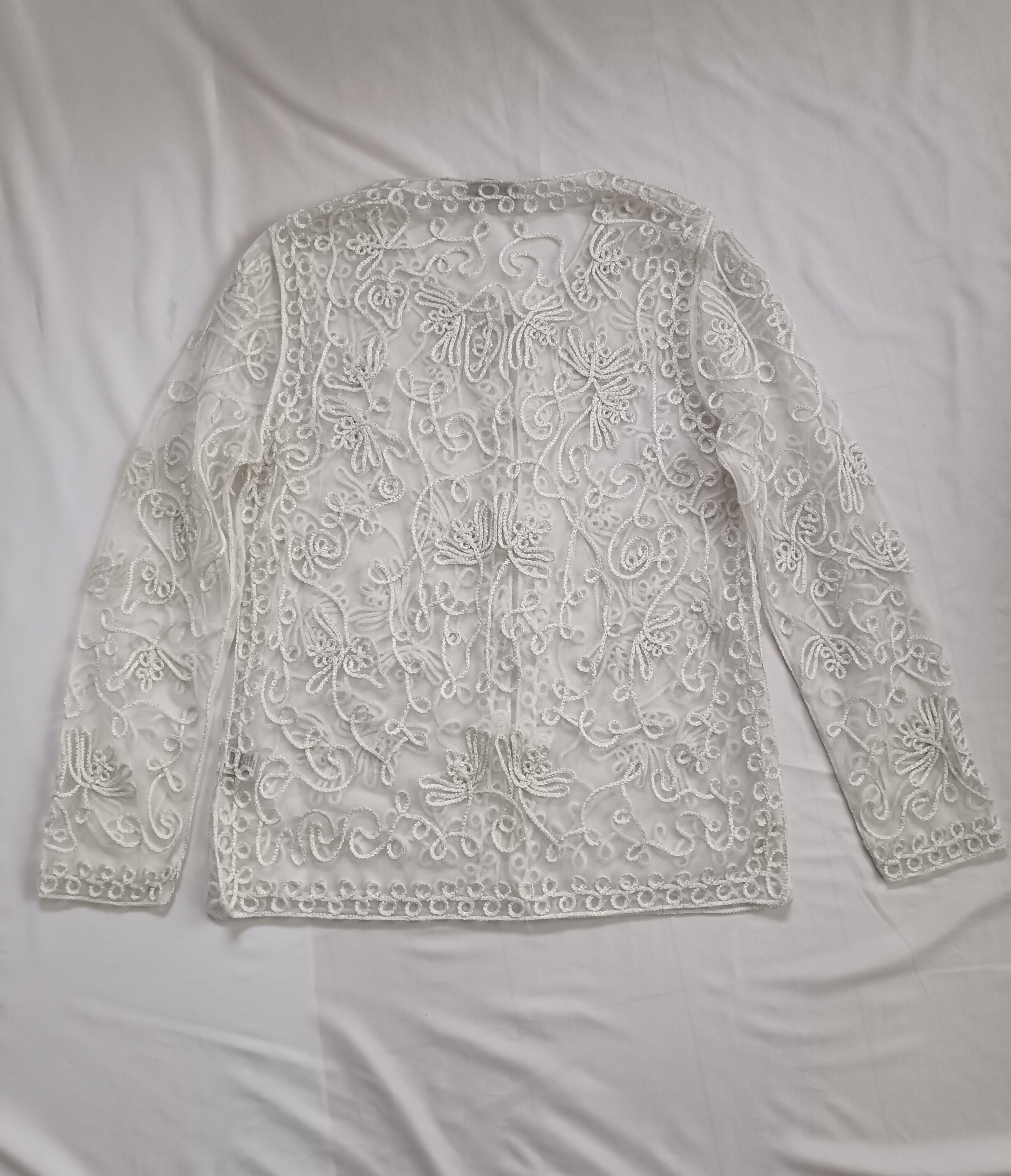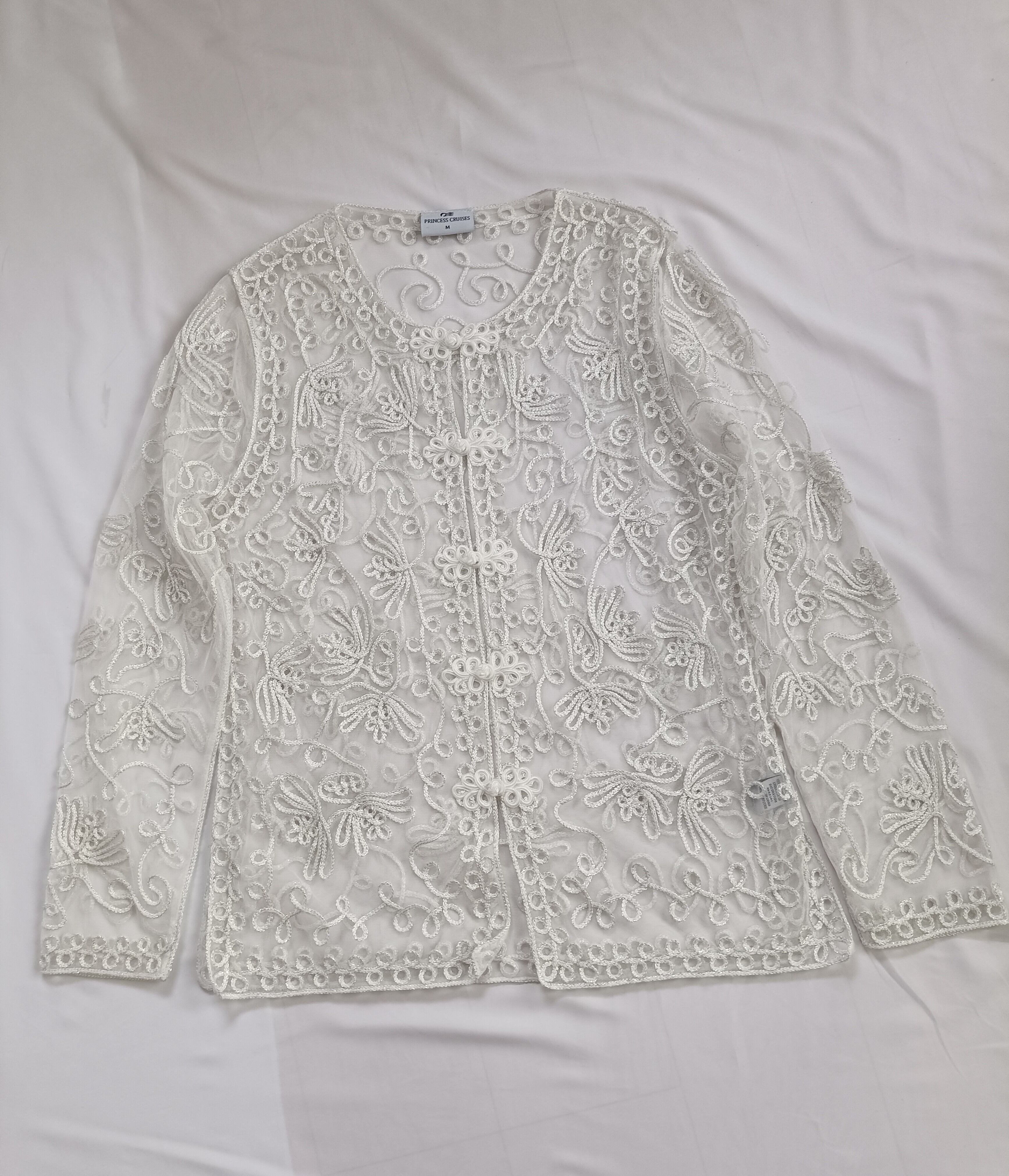 【ホワイト】 コード刺繍チャイナガウン シースルーカーディガン ホワイト