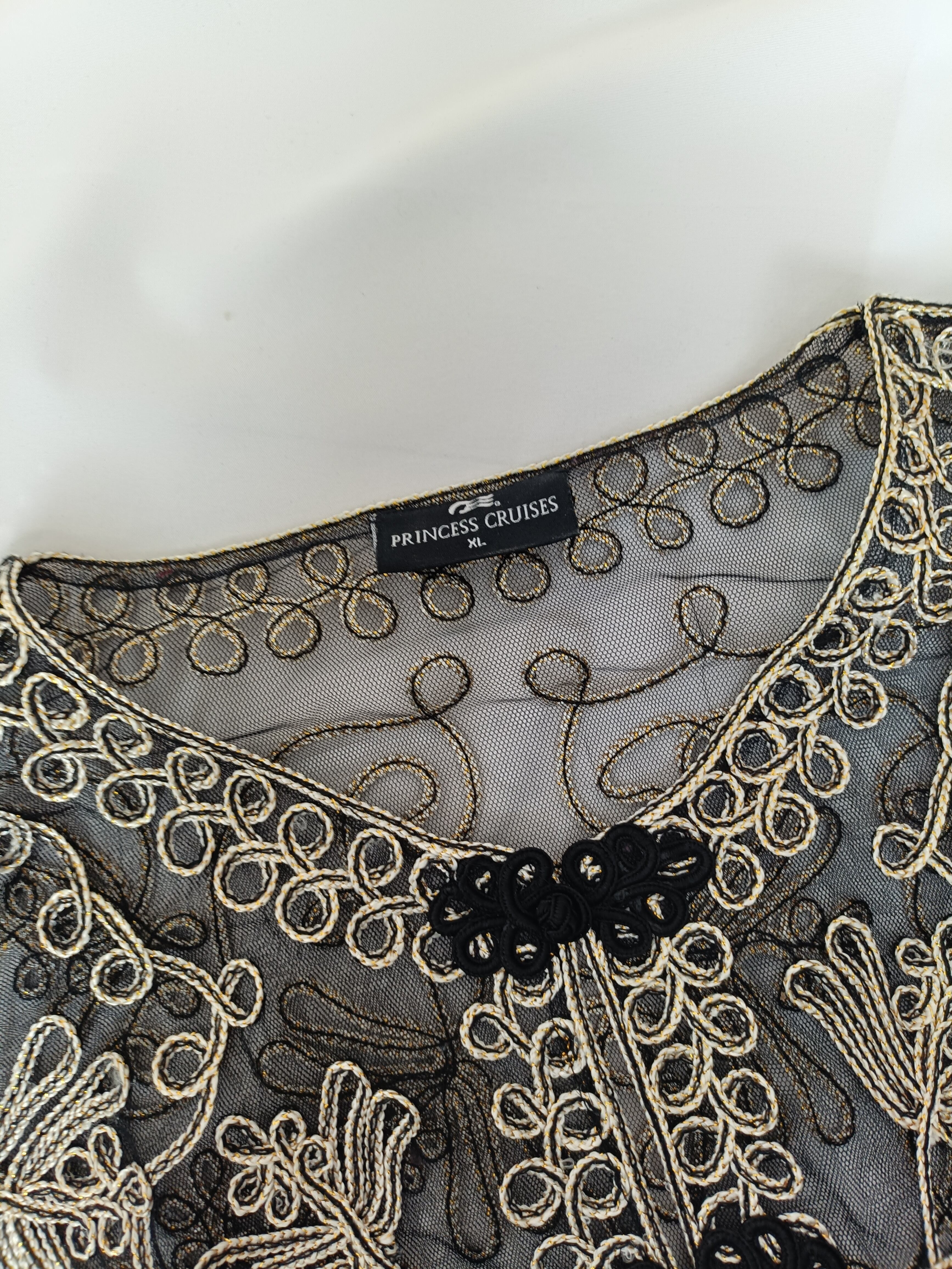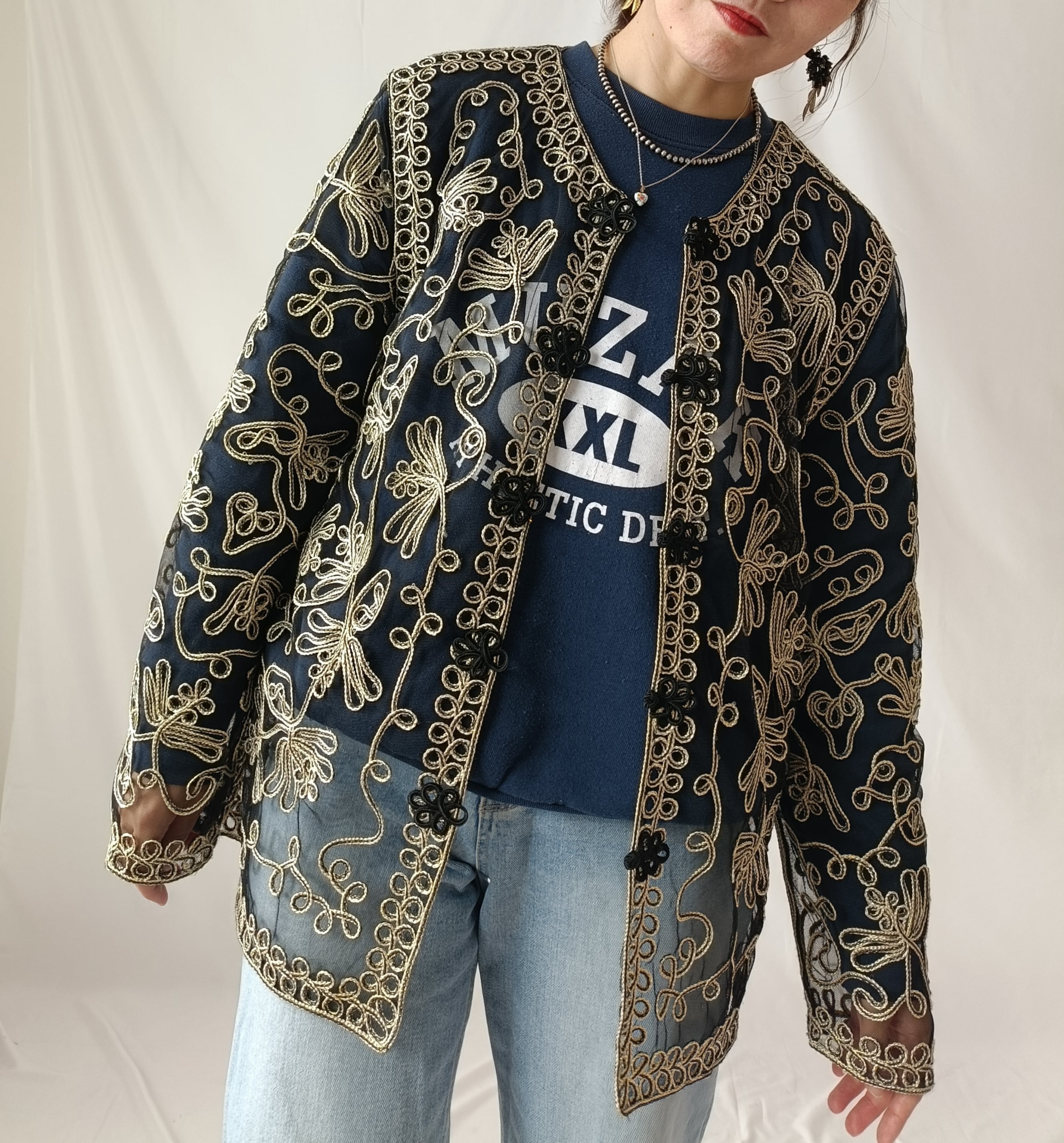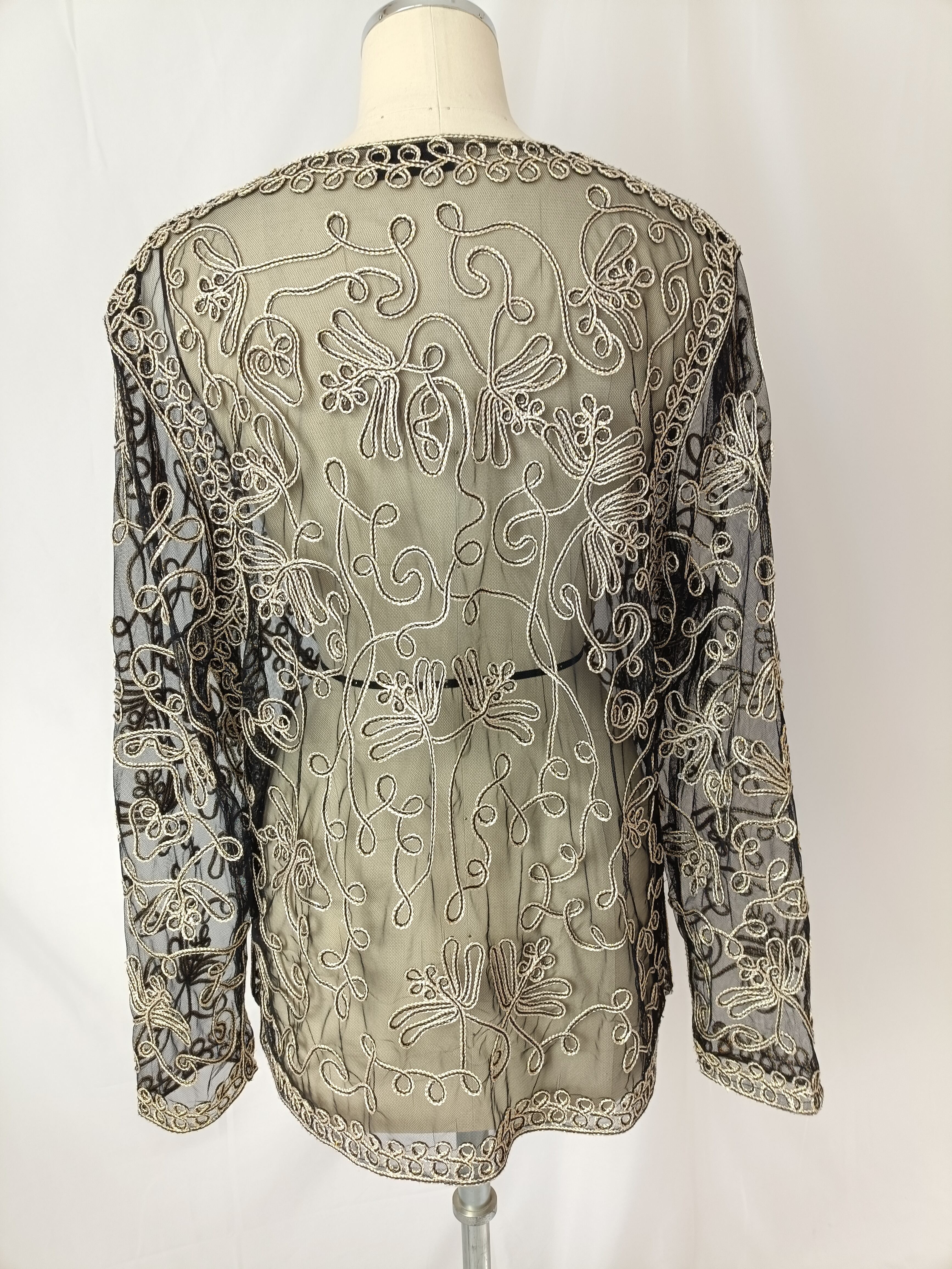 【ゴールド×ブラック】コード刺繍 シースルーカーディガン
